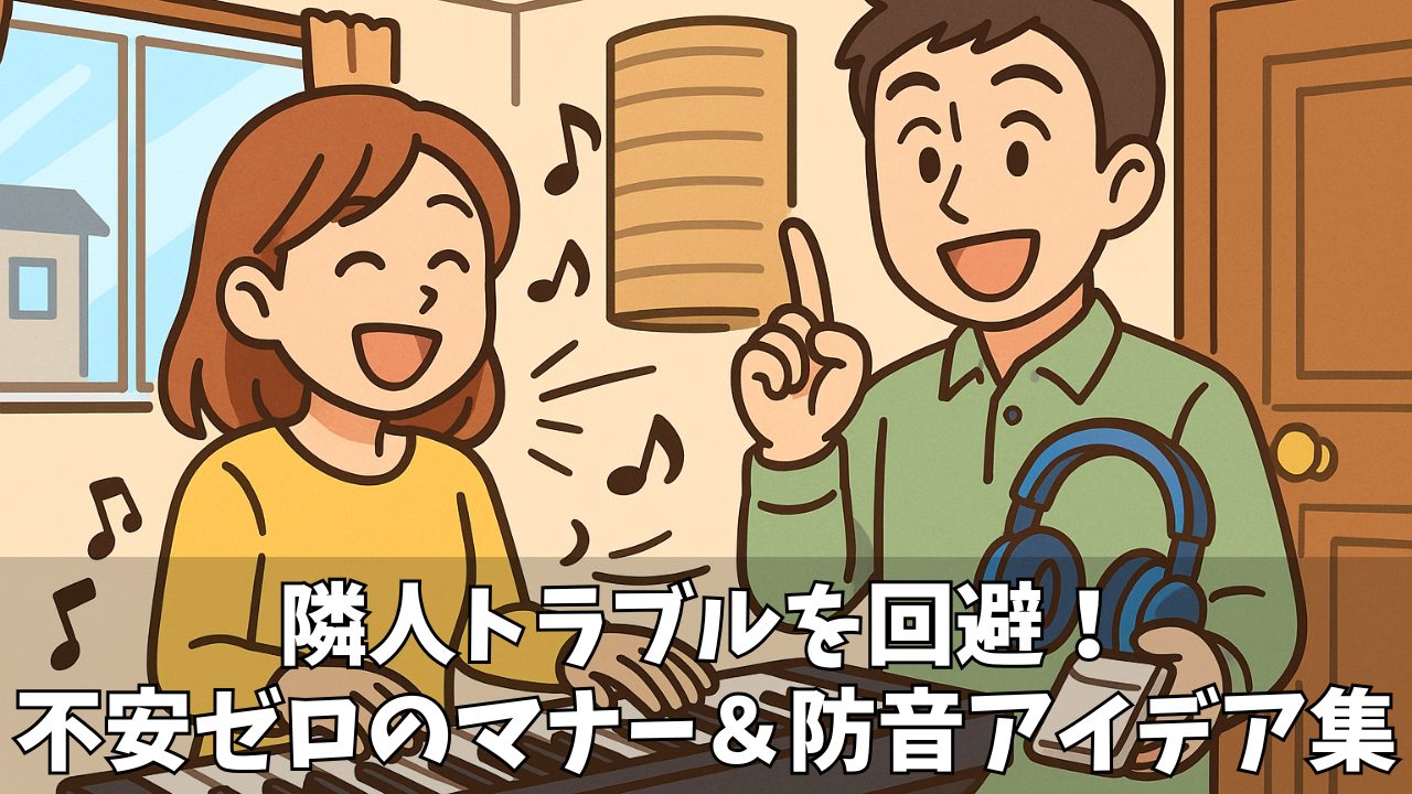 この記事では、賃貸で電子ピアノを弾くときに「音がばれる原因」「実際のリスク」「ばれないための防音対策」「契約上の注意点」まで、まるっと解説していきます。